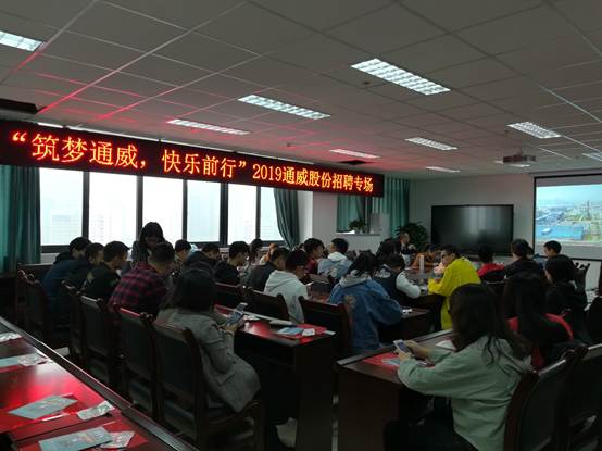 10月17日上午,“筑梦通威,快乐前行”2019通威股份招聘专场在7教1109顺利开展。通威股份为每个到场的同学准备了通威食品、企业玩偶、微信红包,招聘现场气氛热烈。