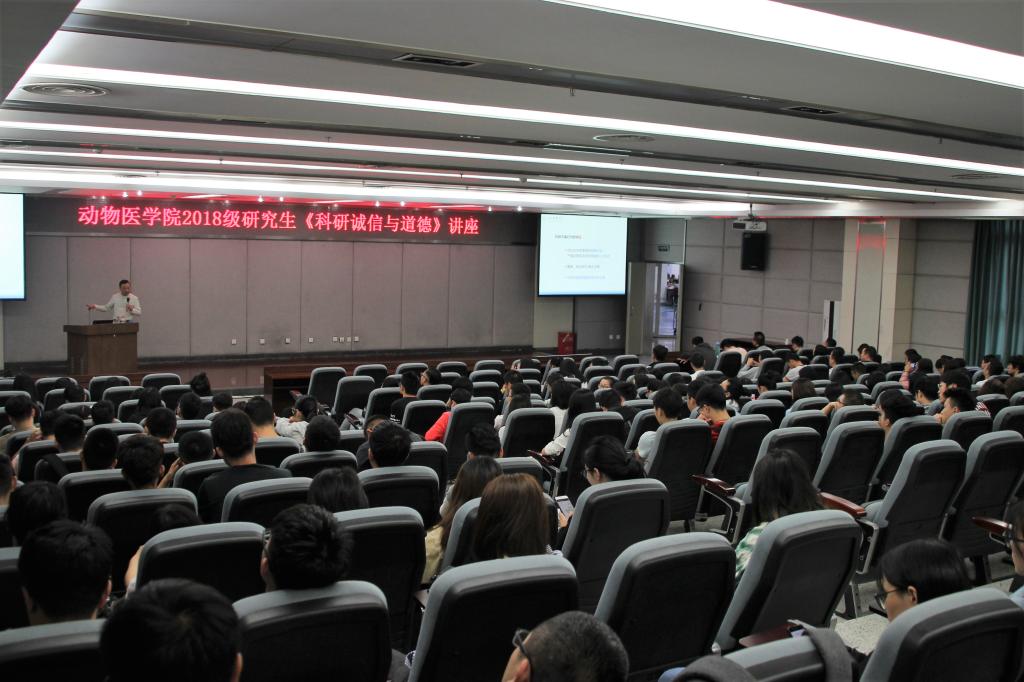 9月10日上午,在图书馆二楼报告厅,邓俊良教授以“坚守科研诚信 防范学术不端”为题为太阳网集团tcy87222018级博士生、硕士生170余人开展科研诚信与道德讲座。