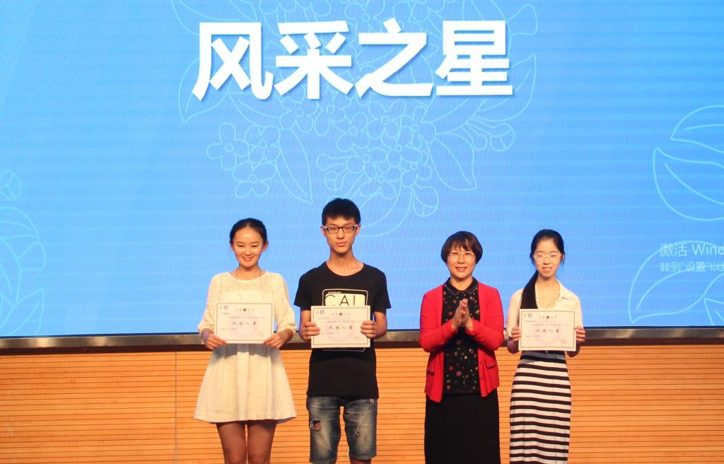 冯德兰、付民阳等同学刻苦学习,以优异成绩获得“勤学之星”;龚松林、王二龙等同学投身科研工作,发挥创新精神,荣获 “双创之星”;“字如其人,人更胜字”的赵军杰、啦啦操大赛第一名周珊等同学培养特长、风采奕奕,斩获“风采之星”;“公益与实践之星”由积极投身社会实践、致力于公益活动的杨维杰、潘丽思等同学获得;杨洪、瞿欢等同学独立自强、笑对人生风雨,喜获“自强之星”。