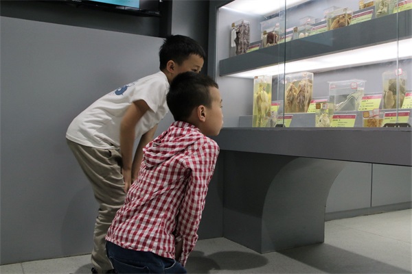 在标本馆,小朋友兴致勃勃的参观了动、植物标本,寄生虫标本,了解了基本的人畜共患病的一些知识。