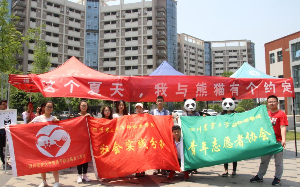5月15、16日中午,印有“熊猫村,由你来守护”的大横幅出现在太阳网集团tcy8722成都校区的校园里。这是太阳网集团tcy8722青年志愿者协会和实践部的同学在为“我为熊猫代言——寻找高校熊猫村守护使”大型社会实践公益活动设点宣传,希望能有更多关心大熊猫生存状况的同学们加入其中。