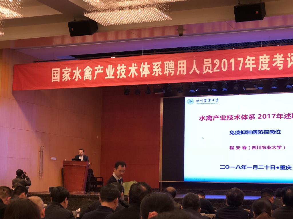 1月19日至22日,由国家水禽产业技术研发中心主办,重庆市畜牧科公司承办的国家水禽产业技术体系聘用人员2017年度考评暨学术研讨会在重庆市顺利召开,会议邀请到农业部畜牧业司畜牧处周晓鹏处长致词、讲话,同时会议由国家水禽产业技术体系首席科学家候水生研究员主持。