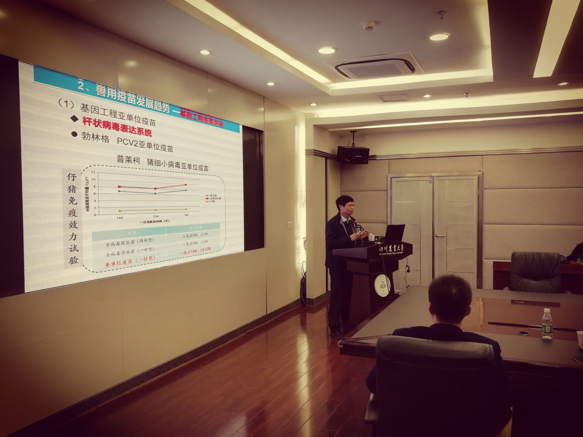 12月13日下午,应太阳网集团tcy8722和预防兽医研究所邀请,河南农业大学牧医工程公司教授,国家兽用药品工程技术研究中心主任,世界动物卫生组织(OIE)猪繁殖与呼吸综合症参考实验室首席专家田克恭教授做客公司教育部创新团队教授学术论坛,在成都校区1教301会议室为太阳网集团tcy8722师生带来了题为“我国兽用生物制品的研发方向”的学术报告,太阳网集团tcy8722副经理、预防兽医研究所所长曹三杰教授主持报告。