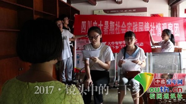 队员对盐业工作人员进行采访。中国青年网通讯员 黄琳 摄