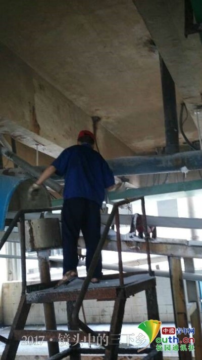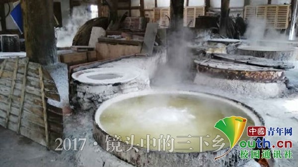 燊海井内厂房内设施较为陈旧,温度极高,盐卤水沸腾,雾气腾腾,成盐的时间极长。中国青年网通讯员 郭玉琳 摄