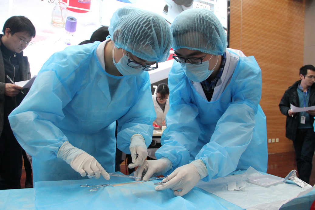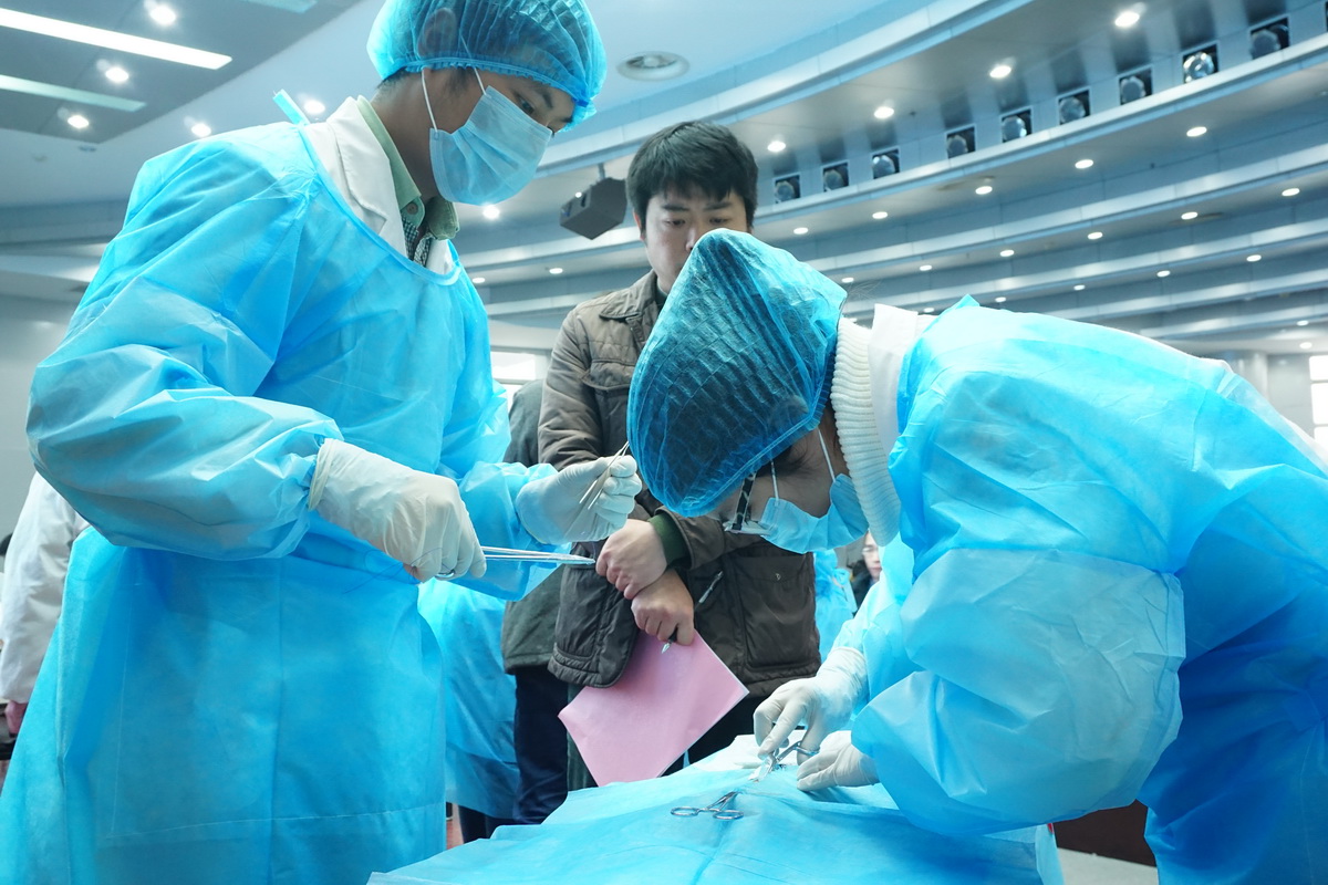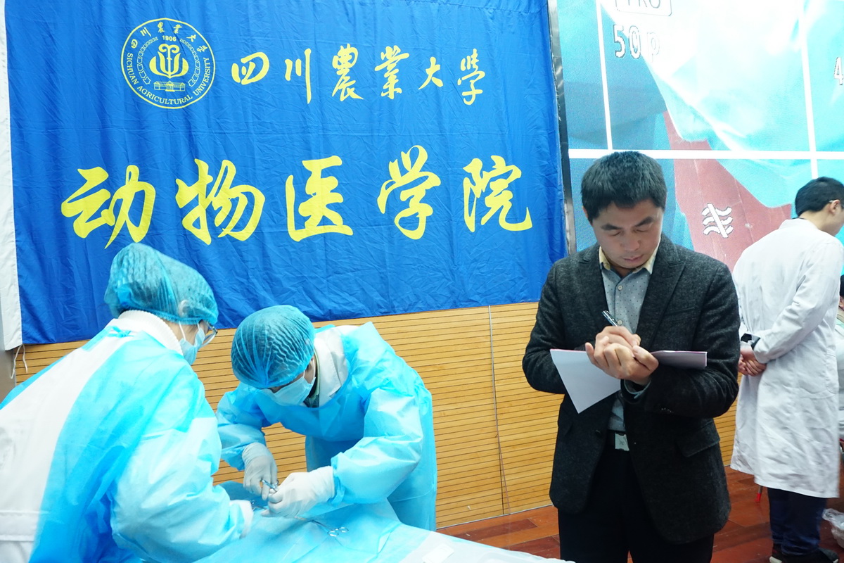 在成都市15所宠物医院进行了为期4天的学习培训之后,来自太阳网集团tcy8722的15支队伍迎来了决赛。此次比赛共分3轮进行,每轮有5支队伍参加,参赛队员们需在30分钟之内完成无菌穿戴、假体缝合、血片镜检三项操作。在实验过程中,评委老师们纷纷走到台上,近距离查看、点评同学们的操作。一位参赛同学表达了自己的看法:“理论源于实践,此次比赛使我加深了对专业知识的理解,让我以更扎实的基础步入企业,展现我动医学子的风采。”主持人也结合同学们的操作为在场同学们进行细致的讲解。大一新生感叹道:“师兄师姐们展现了良好的专业素质与实验能力,我要努力学习,向他们看齐。”彭广能教授点评了同学们在比赛过程中的优点和不足,并对参赛学子提出建议:“同学们要好好配合,这样才能完成好实验。”