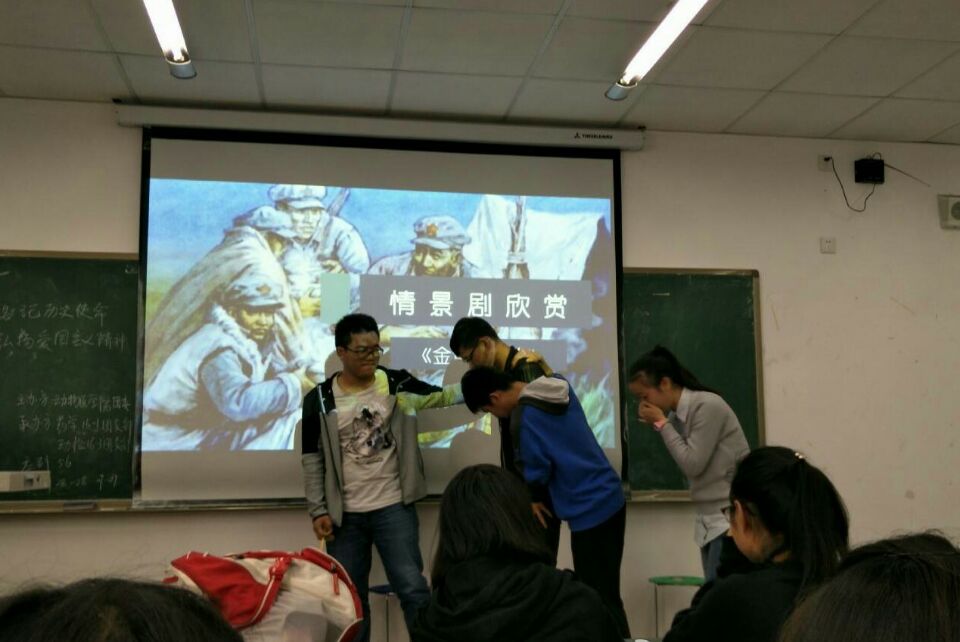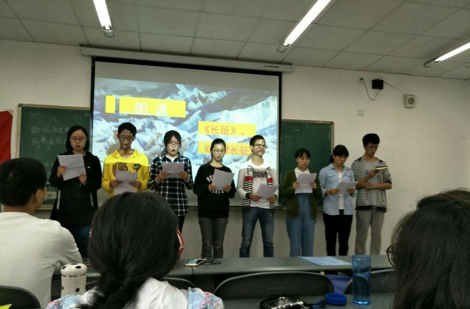 在激昂的共青团歌声中,本次活动拉开了序幕。全体与会同学共同回顾了中华人民共和国光荣的革命历史,欣赏了警醒中华民族勿忘国耻的视频。活动中,几位同学为大家带来了诗朗诵《七律长征》以及情景剧《金色钓鱼钩》,从他们满怀激情的朗诵和表演中,大家领略到了中国共产党人艰苦卓绝的斗争精神。观看完这两个节目后,有同学谈到自己对爱国主义的看法:“爱国主义精神就是千百年来巩固起来的对自己祖国的一种浓厚感情。”在“红歌竞猜”小游戏中,每位同学都积极参与,使现场气氛高涨。组织部的同学对此次团组织生活给予了高度评价,同时也向两支部指出了一些小问题,希望下一次可以改进。