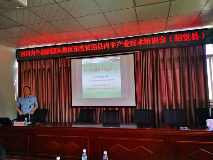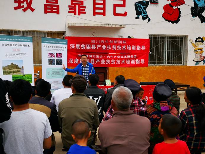 几天的时间里,动医专家们马不停蹄地前往指定帮扶村镇,围绕当地肉牛养殖和疾病防治的关键问题,以现场培训、讲座等形式开展技术扶贫活动。在昭觉县农业农村局组织的“四川肉牛创新团队彝区深度贫困县肉牛产业技术培训会”中,左之才就肉牛的购买、养殖、疾病防治、人工授精注意事项等问题,还对参会120多名肉牛人工授精人员、养殖大户以及专合社技术人员进行集中培训和现场答疑。