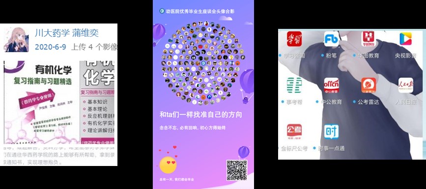 因为不能相聚线下,同学们想出了特别的方式来表达对师兄师姐的祝福。“师姐毕业快乐!”“师兄加油!”“我们一定努力向你们看齐!”……通过群课堂对话、bilibili弹幕、微信头像合影、QQ祝福小程序,动医学子们利用网络送出祝福、表达决心,既拉近了彼此之间的距离,也让即将毕业的“老学长”、“老学姐”们感受到了浓浓的动医情。